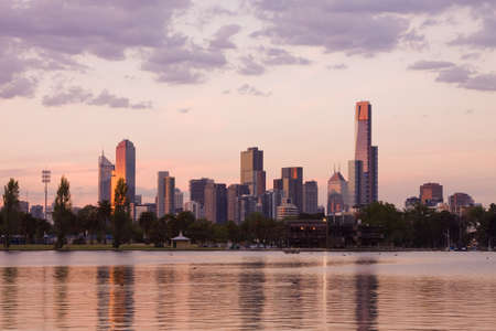 Melbourne, Australia - December 4: Landscape of the South Melbourne in the evening on December 4, 2018 in Melbourne, Australia.