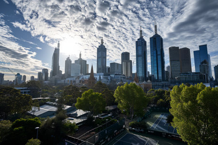 Melbourne skyline with Australian Open in progress Ai generated