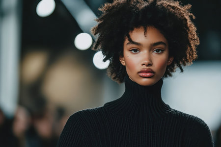 Fashionable young african american woman with afro hairstyle posing on stage.