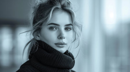 Portrait of a beautiful young woman in a black sweater and scarf