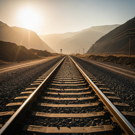 Explore the beauty of tranquil railway tracks at sunset, showcasing the harmony of nature and travel. Ideal for themes of exploration and serenity.