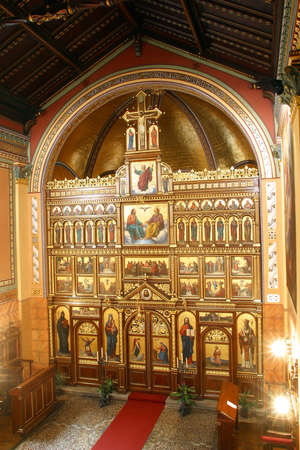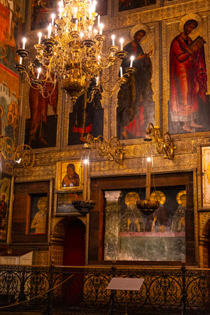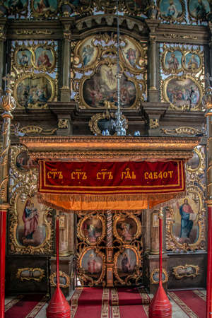 Fruska Gora / Serbia - March 24, 2019: Iconostasis in the Mala Remeta, Serbian Orthodox monastery on the Fruska Gora mountain in the province of Vojvodina in northern Serbia, built in 13th century