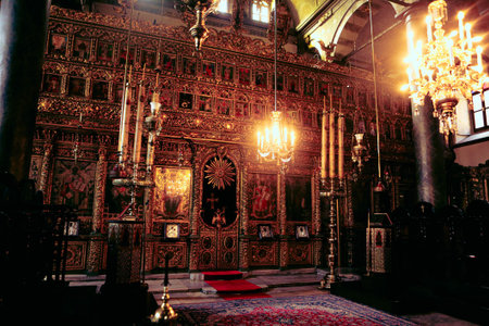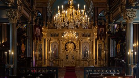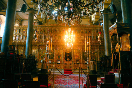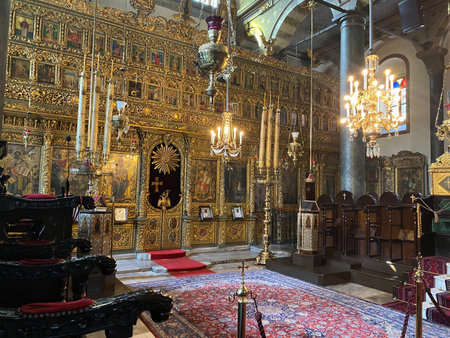Istanbul, Turkey - September 2018: Interior detail from Bulgarian iron St. Stephen Church, an orthodox church