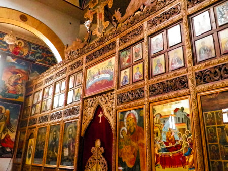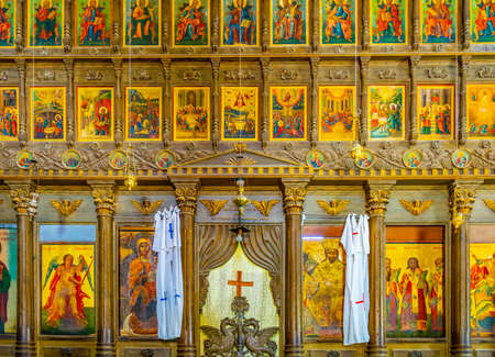 The iconostasis in the monastery of the Temptation on the mountain, Carental, Jericho