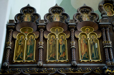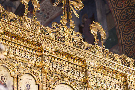 Iconostasis of Assumption Cathedral in Bila Krynytsia. Close-up.