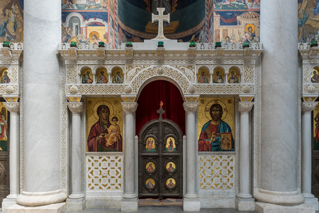 STAVROVOUNI, CYPRUS, APRIL 7, 2018: Interior of the Church of all saints near stavrovouni monastery on cyprus