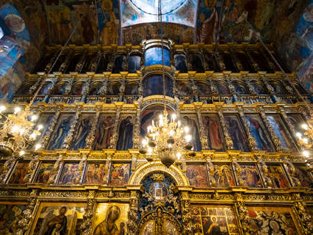 ISTRA, RUSSIA - MAY 27, 2016: the Iconostasis of the Resurrection cathedral of the Voskresensky New-Jerusalem stavropegial male monastery, Istra, Moscow region, Russia.