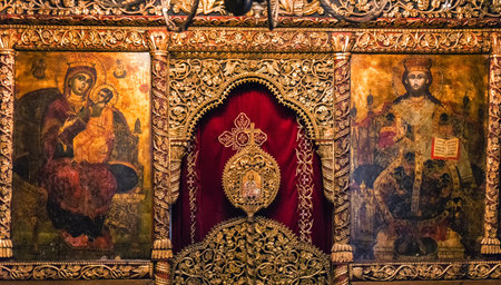 FAMAGUSTA, CYPRUS, AUGUST 28, 2017: Interior of museum of icons inside of the St. Barnabas monastery on Cyprus