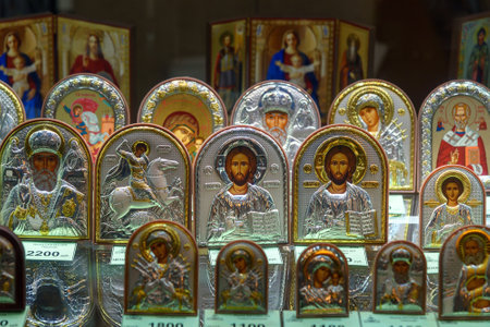 Saint Petersburg, Russia - January 6, 2018: Iicons for sale in Saint Isaac's Cathedral or Isaakievskiy Sobor