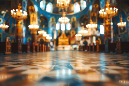 Abstract blurred Orthodox church background, peaceful Christian sacred space