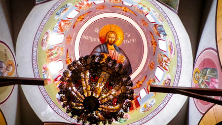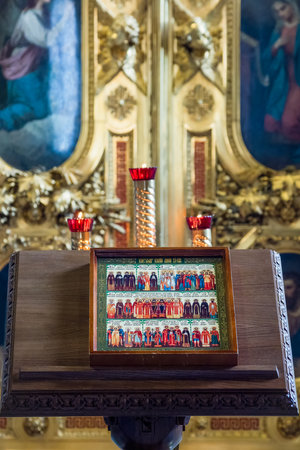 Podgorica, Montenegro - 02 july 2020: Icon depicting Jesus and the saints inside the Cathedral of the Resurrection of Christ in Podgorica