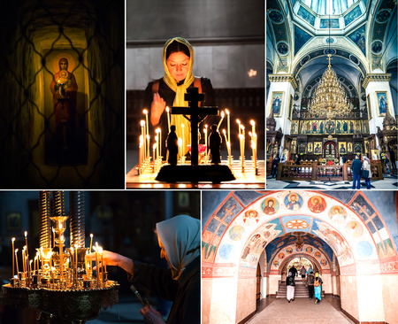collage of photos Orthodox parishioners in the church