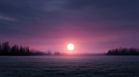 A sunrise rural field frost mist horizon purple landscape serene sunrise over rural frost field with soft mist bands purple sky and clean horizon