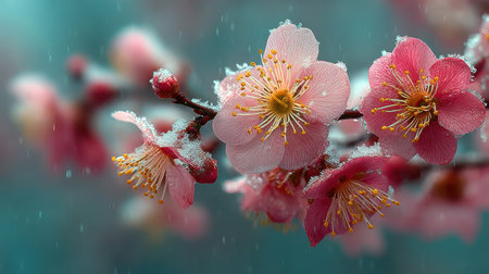 peach blossom covered with snow