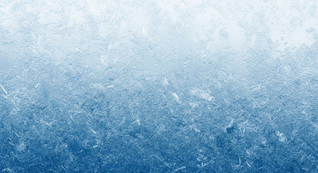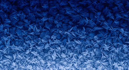 Intricate blue frost patterns forming a beautiful gradient, showcasing the delicate artistry of winters icy embrace on a cold surface