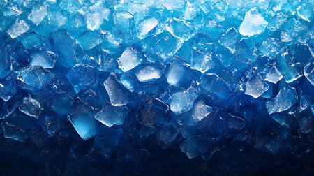 Crystal clear abstract background showcases sharp ice formations with cool blue tones, creating a serene atmosphere ideal for design and artistic projects