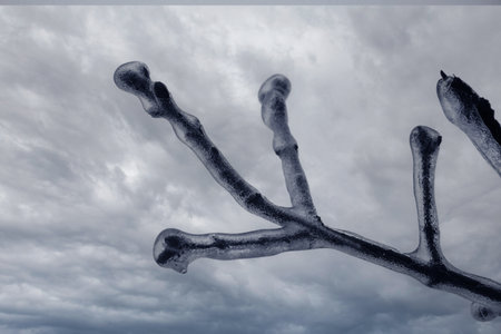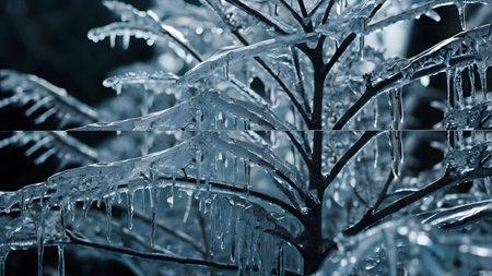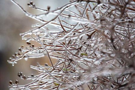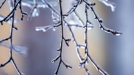 Ice-covered branches tree after freezing rain