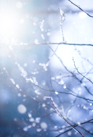 Defocus beautiful blur winter background with ice and snow on branches