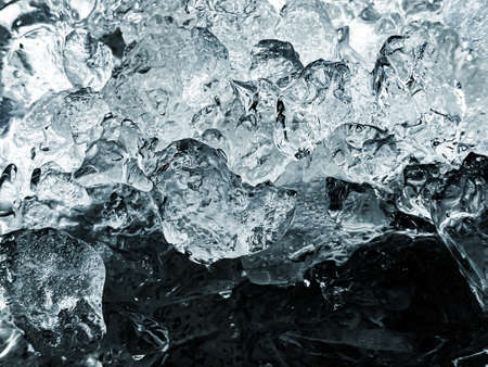 Ice cubes background. Close up of ice cubes. Toned.