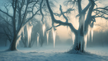 A mesmerizing scene unfolds as intricate ice shards intertwine in a mystical atmosphere celebrating the magic of New Year.