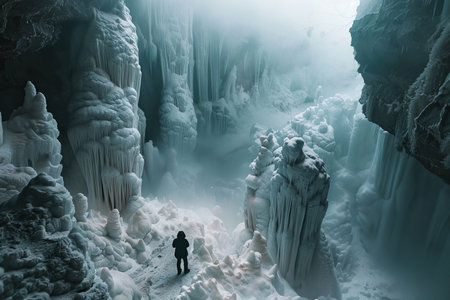 Enigmatic dry ice fog creates an ethereal atmosphere with icy formations