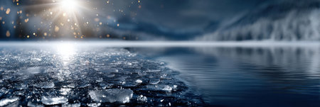 Stunning ice formations on a frozen lake under cinematic lighting during winter