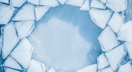 Photo texture of a broken blue lightened and toned ice with copyspace.