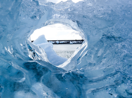 Icebergs swimming on world famous Jokulsarlon glacier lagoon in southern Iceland