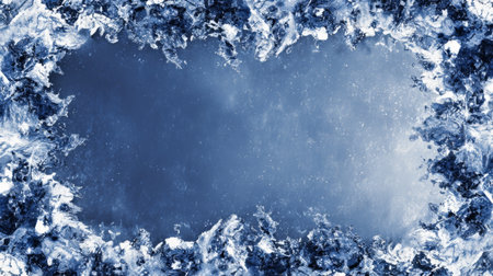 Stunning blue background framed by sharp icicles and frost, creating a captivating winter scene. Ideal for seasonal themes and cold weather imagery.