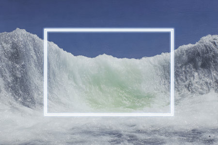 The broken blue ice background has a rectangle hole and a frame in 3D