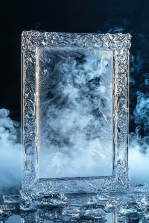 Unique translucent ice shards form a striking textured border around a dark center, enhancing depth and creating a visually engaging layout.