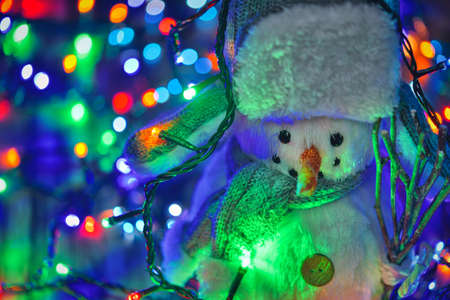Luminous Christmas Snowman made of blue electric garland in the dark