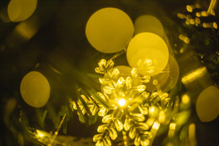 the nigt light bokeh festival with small LED light decor on party night christmas or new year background