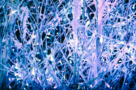 Glowing blue christmas lights shaped like icicles shine brightly against a dark background, creating a festive and magical atmosphere perfect for holiday celebrations