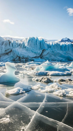Arctic Tranquility. Icy Landscape with Frozen Water and Ice Formations, Minimalist Nature Background