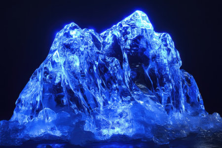 A blue ice block with lightning bolts on it. Scene is dark and ominous with Generative AI