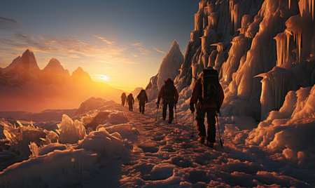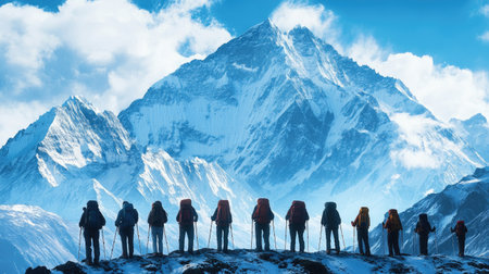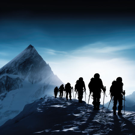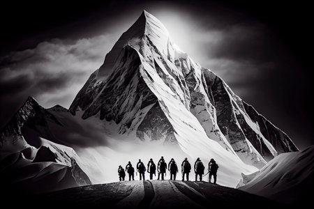 Synergy fuels a groups ascent, teamwork etching paths to the lofty summit
