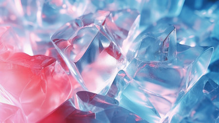 Vibrant ice cubes in shades of blue and pink hues combine to create a stunning visual appeal that captivates