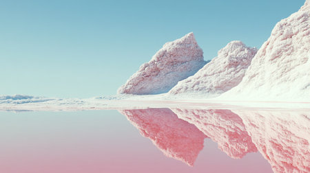 snowy mountains reflected in the water. 3d render illustration