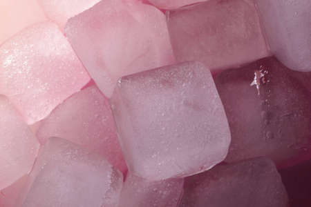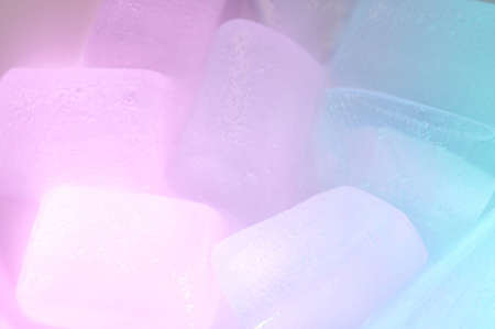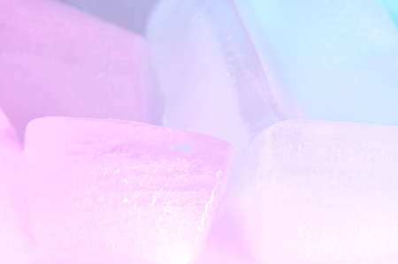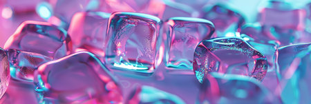 Shimmering, glistening ice cubes are beautifully illuminated with vibrant and colorful pink and blue lighting