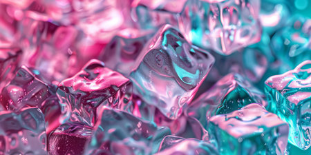 Vibrant ice cubes in shades of blue and pink hues combine to create a stunning visual appeal that captivates