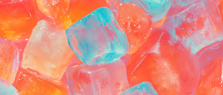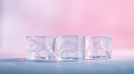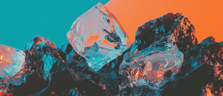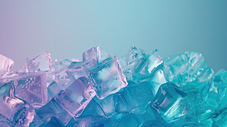 Melting ice cubes on a gradient color background suggest a refreshing cool drink. Ai generated image