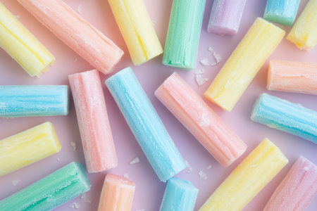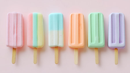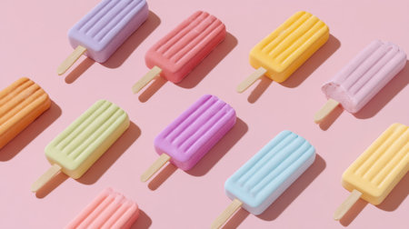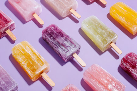A delightful display of colorful frozen treats on sticks, ideal for summer gatherings, kids' parties, and refreshing fun moments. Perfect for vibrant visuals.