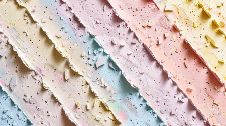 A spectrum of pastel hues ranging from pale yellow to baby pink are layered with a rough speckled texture creating a visually intriguing and dynamic design