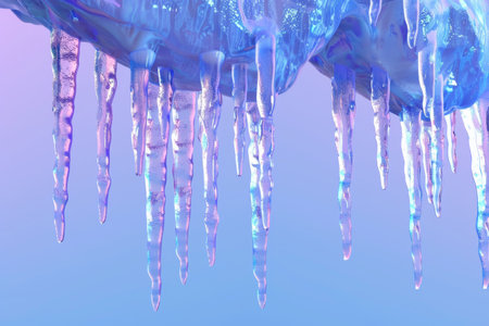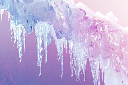 Vivid ice stalactites captured in a row, a spectacle of frozen colors
