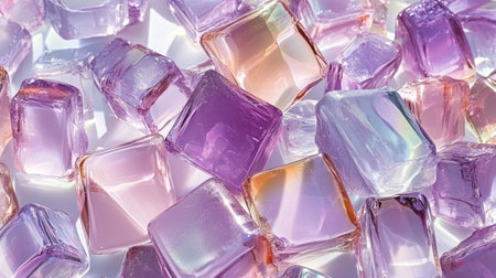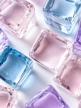Vibrant and delightful pastelcolored ice cubes elegantly sparkling in a whimsical and playful arrangement