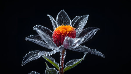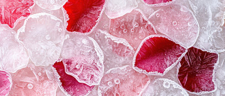 Frozen beauty of delicate flowers encased in shimmering ice crystals
