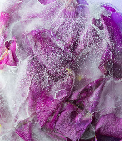 abstract art background of frozen summer flowers in ice. Hoarfrost on pink