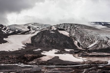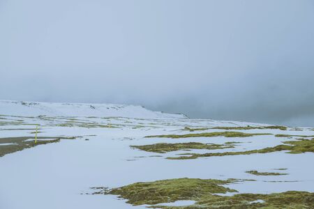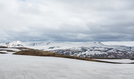 Landscape with snow, Askja caldera area, Iceland. Central highlands of Iceland