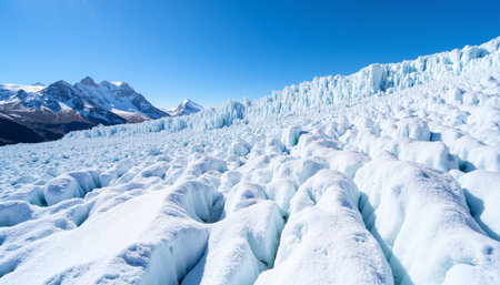 Breathtaking Arctic Vista A Stunning Panoramic View of Snowy Mountains and Glaciers Under Blue Sky